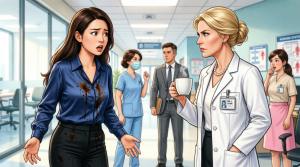 You keep the phone at your ear while the last drops of iced coffee slide down your neck and soak into the waistband of your skirt. Around you, the executive café of St. Catherine Medical Center has become a still life of upper-floor panic. The barista is frozen with his hand half-raised over the espresso machine. A donor liaison from pediatrics stands clutching her tea like she’s witnessing a homicide committed with almond milk. Two surgeons near the pastry case have gone eerily quiet, their breakfast meeting abruptly upgraded into theater.