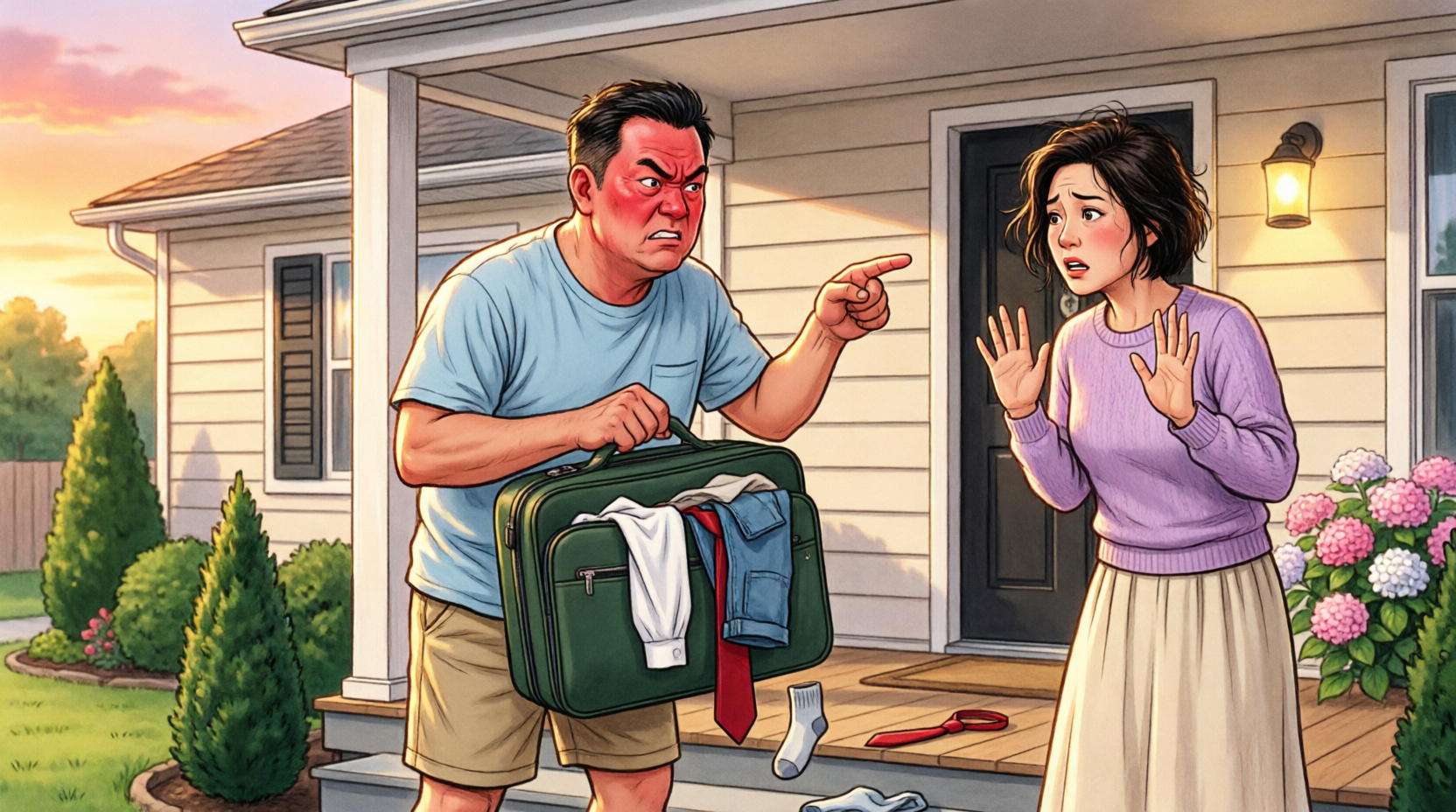 La première chose que j’ai vue en rentrant, c’était ma vie empilée près de la porte d’entrée dans deux grandes valises. L’un d’eux avait éclaté à la couture, et un chemisier en soie que j’adorais pendait comme un drapeau blanc. Pendant un instant, j’ai honnêtement cru qu’il y avait eu une sorte de cambriolage.