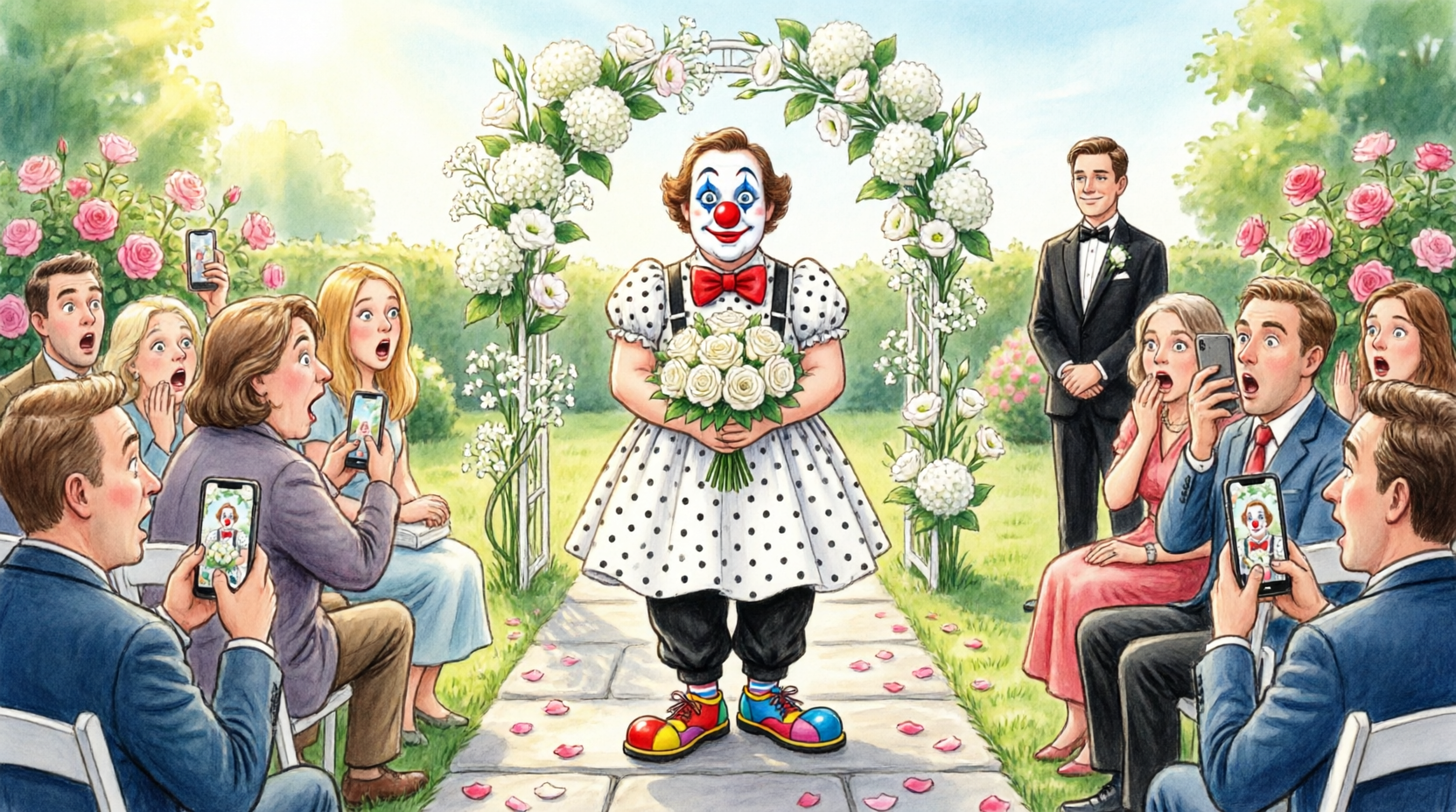 The morning of my wedding should have felt like a dream—soft light through the curtains, quiet anticipation, the kind of nervous excitement people talk about for years. Instead, it felt… still. Almost too still. I stood in the center of the room, staring at the garment bag hanging neatly against the wardrobe, my heart beating just a little faster than it should. Everything had gone perfectly up to that point. The venue was ready, the guests were arriving, the schedule was flawless. I reached for the zipper slowly, letting the moment stretch, wanting to feel it fully—the transition from everything I had been into everything I was about to become. I pulled it down. And froze. For a second, my brain refused to process what I was seeing. Bright colors. Loud colors. Red. Yellow. Blue. Not lace. Not silk. Not anything remotely close to a wedding dress. My hands moved before my thoughts caught up, pulling the fabric out fully—and there it was. A full clown costume. Red nose. Rainbow wig. Oversized shoes stuffed awkwardly into the bottom of the bag. It wasn’t subtle. It wasn’t accidental. It was deliberate. Calculated. Designed to humiliate. The room felt smaller suddenly, like the air had shifted. I stared at it, waiting for anger, for panic, for something to break through the shock. And then I understood. My future mother-in-law. The comments she made. The smiles that never reached her eyes. The way she always spoke about “standards,” about “fitting into the family.” She had been waiting for this moment. Testing me. Pushing me. Hoping I would crumble just enough to prove her right. That I didn’t belong. That I wasn’t good enough. That I would embarrass them. I let out a slow breath, my fingers still holding the ridiculous fabric in front of me. She expected chaos. Tears. A scene. Maybe even a canceled wedding. That was the plan. And for a moment—just a moment—I almost gave it to her. But then something shifted. Not anger. Not revenge. Something sharper. Clarity. If she wanted a performance… then I would control the stage. A small smile formed before I could stop it. Not forced. Not dramatic. Just certain. I set the costume down carefully, then picked it up again, this time with intention. “Alright,” I murmured softly to myself. “Let’s make this memorable.”
