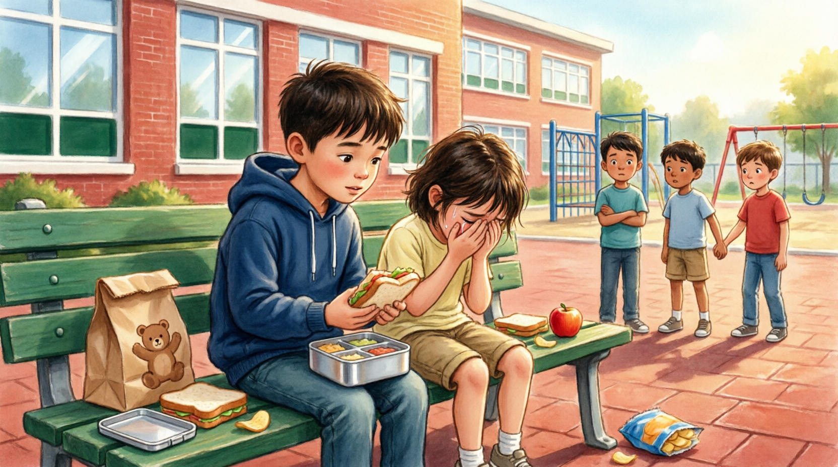 And suddenly, I thought about my own lunch—sitting untouched nearby in a leather case. Inside were expensive sandwiches, imported drinks, desserts I barely noticed. Prepared by someone my mother paid, not by someone who loved me.