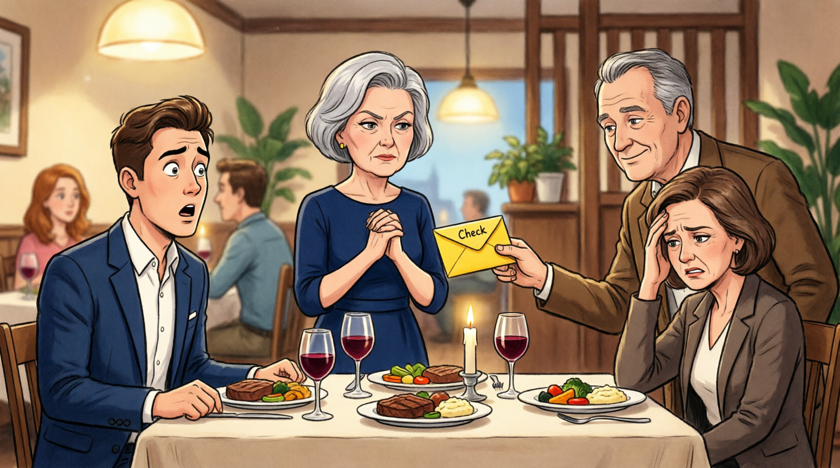 That Friday evening, I wore a plain navy dress with low heels and the silver watch my husband gave me on our twentieth anniversary, choosing nothing flashy or attention seeking. The Dalton family was already seated when I arrived, their table covered with crystal glasses and carefully arranged smiles that looked more strategic than welcoming.