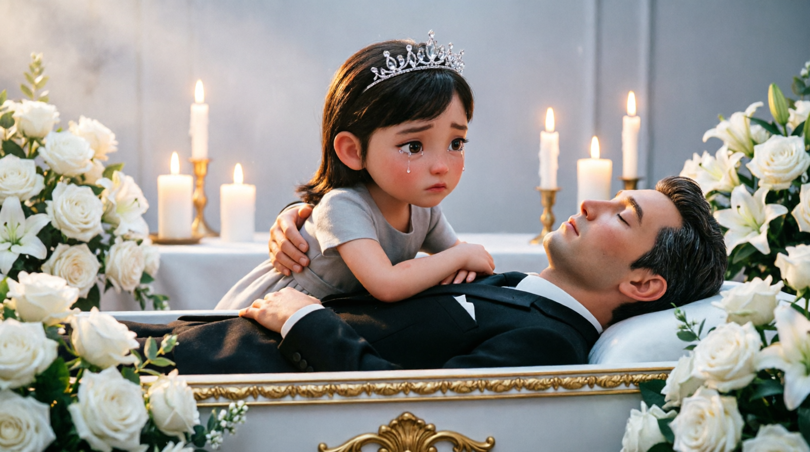 You crouch beside the coffin, and your voice shakes as you speak to your daughter like you’re negotiating with fate.