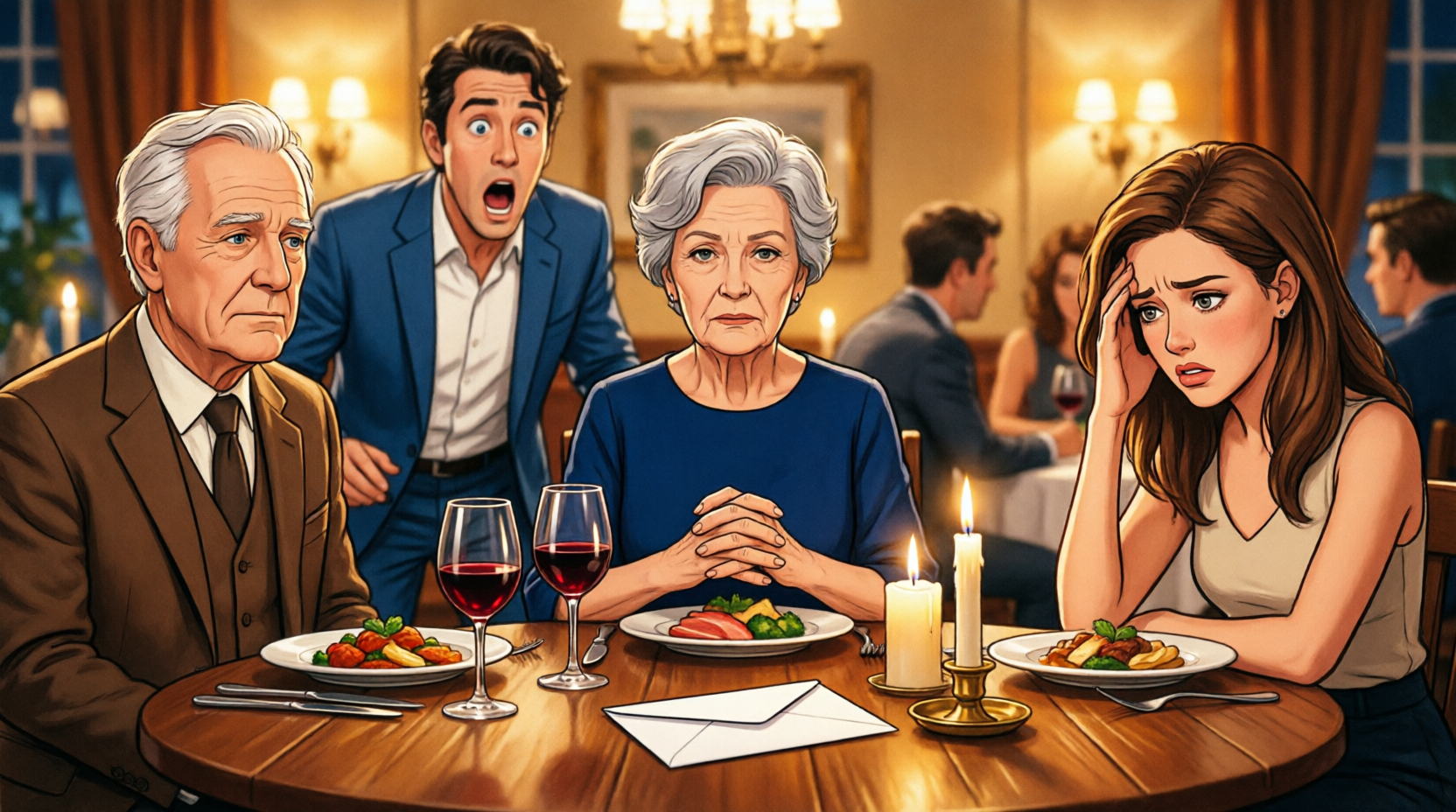 Scott greeted Abigail with a quick kiss and nodded at me, while his mother Diane Dalton looked me over from head to toe in a single efficient glance. The appetizers had barely been cleared when his father Howard Dalton straightened his tie, Diane folded her hands neatly, and Scott slid a sealed envelope across the table toward me.