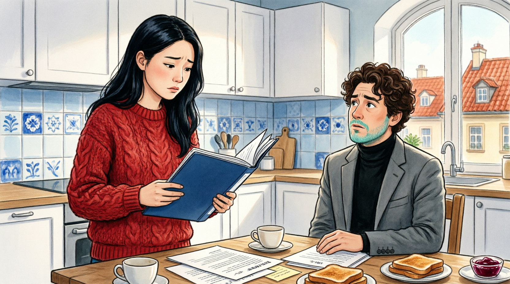 He was reading medical news on his phone, as usual. I placed the blue folder on the table beside the toaster.